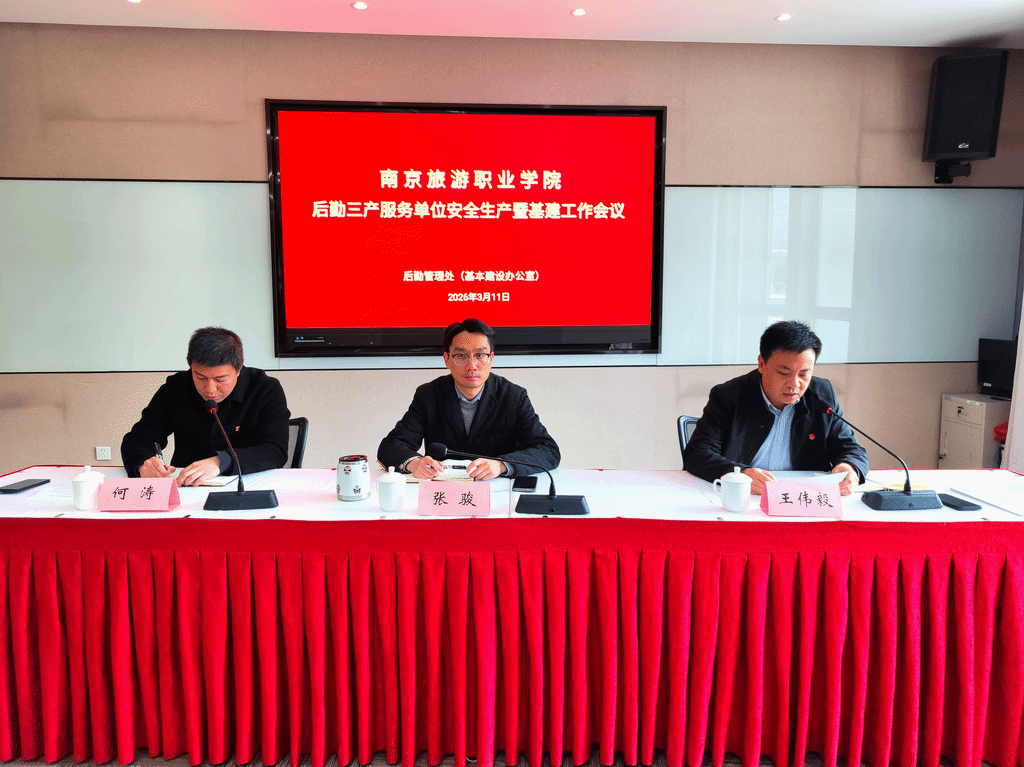 为进一步压紧压实安全生产主体责任,全方位规范服务单位的运营管理,3月11日上午,后勤管理处在行政楼111会议室组织召开了三产服务单位安全生产暨后勤基建工作会议。学院党委委员、副院长张骏,后勤管理处处长王伟毅、副处长何涛,部门工作人员以及30家三产服务单位负责人参加会议,会议由王伟毅主持。会上,王伟毅依据《南京旅游职业学院安全生产责任制实施细则》中明确的后勤工作职责,深入阐释了安全发展理念,强调要坚定不移地落实“...