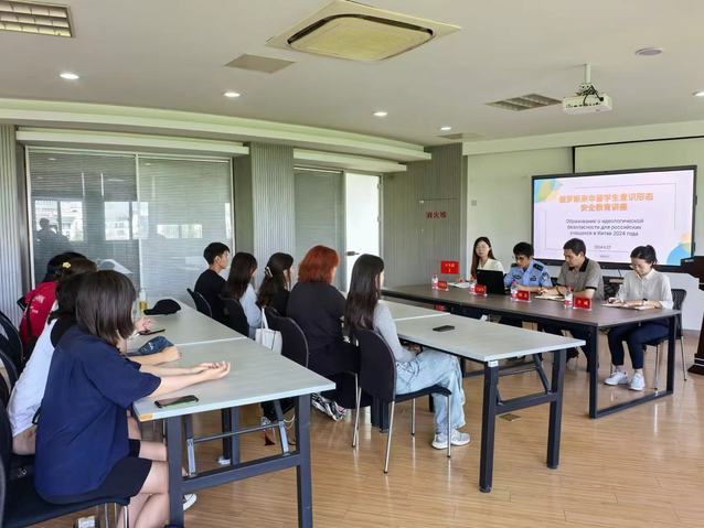 为加强对来华留学生的教育管理,切实提升他们在华学习期间的安全意识、身心健康及整体安全保障,9月27日下午,国际交流合作处特邀南京市江宁公安分局出入境管理大队王晨星警官,为2024级俄罗斯来华留学生举办了意识形态安全教育讲座。国际交流合作处处长颜忠、来华留学生项目负责人卫威、俄罗斯留学生辅导员侯筱钰以及所有俄罗斯留学生出席了本次活动。