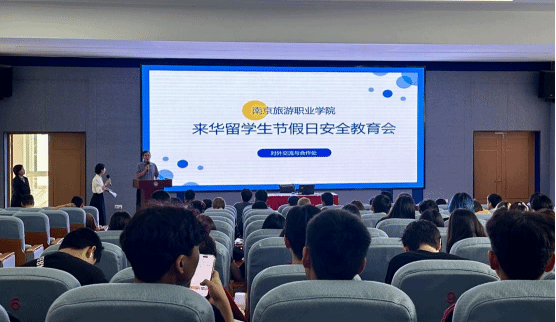 2025年9月30日,对外交流与合作处在教学楼报告厅召开了留学生节前安全教育会。对外交流合作处处长颜忠、旅游外语学院书记陈海艳、旅游管理学院副书记李伟、留学生辅导员侯筱钰、叶斯哈提及全体留学生共同参与了会议。本次活动由对外交流与合作处副处长吕晋主持。