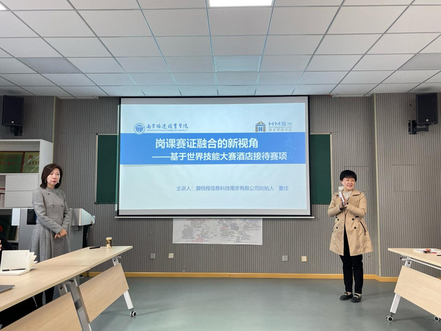 为推动职业教育高质量发展,增强职业教育的适应性,促进职业教育理念更新和技能人才创新培养,3月14日下午,酒店管理学院邀请灏悦程信息科技南京有限公司创始人董佳女士开展“岗课赛证融合的新视角——基于世界技能大赛酒店接待赛项”的主题讲座。