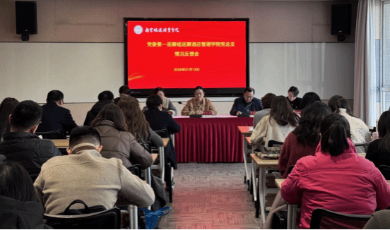 根据党委巡察工作安排,2026年1月15日,第一巡察组向酒店管理学院党总支反馈巡察情况。学院党委副书记朱琰,第一巡察组组长王娜、副组长陈海艳出席会议。酒店管理学院党总支副书记、院长孙爱民主持会议并作表态发言。