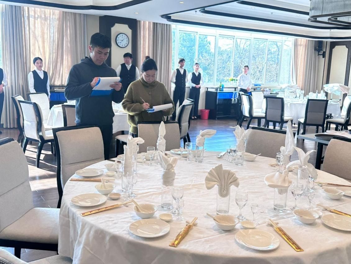 此次考试分为三个模块:前厅服务与数字化运营(笔试)、仪容仪表及英语口语(面试)和中餐宴会摆台(技能操作),考试各个环节衔接有序、考纪严明,评委们公平公正,考生们精神饱满,认真应对各项考试模块。