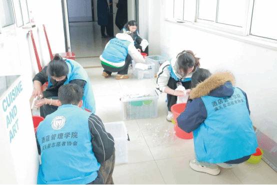 专项工作布置会后,酒店管理学院本着高度重视、周密安排,全力做好各项保障的原则开展工作。赛前2周,组织满天星学生志愿者参与筹备工作,每天安排8名学生分上、下午两个时段,全力开展餐具清洗、消毒、分类整理,以及考试所需各类物品的清点、摆放、归置等工作。同学们严格按照考核标准,细致处理每一件餐用具,以高度的责任心和认真负责的态度,确保考试物品整洁规范、摆放有序。