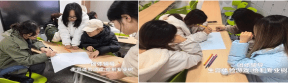 陈建玲老师主持的“绘制专业树”活动,则以视觉化、创造性的方式,引导学生梳理专业课程体系与岗位对应关系。同学们在集体创作中加深了对专业内涵的理解,进一步明确“学什么、为何学、未来做什么”,强化了专业认同与学习使命感。