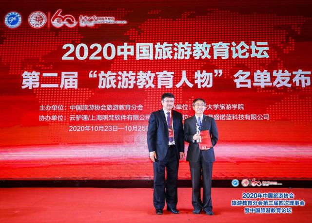 中国旅游协会旅游教育分会会长保继刚教授为周春林书记颁奖