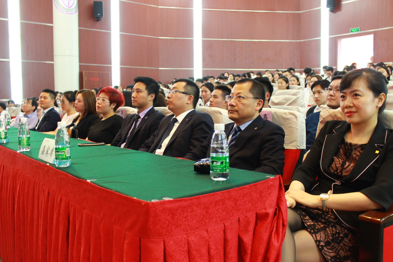 第二环节由优秀校友代表——金陵饭店总经理助理,金陵汇德物业公司总经理周蕾女士上台发言。周蕾作为我校94届毕业生,从毕业到现在已经在金陵饭店工作23年,是一位资深的酒店职业经理人。她不仅和在座的学弟学妹们分享了自己的职业生涯,更对所有的学弟学妹围绕“认真刻苦、不断学习、积极乐观、学会感恩”四个关键词,提出了的寄语。周蕾的发言让在座的每一位学生备受鼓舞,起到了很好的榜样作用。值得一提的是,此次开幕式上邀请到的酒店高管均为我校杰出的校友。