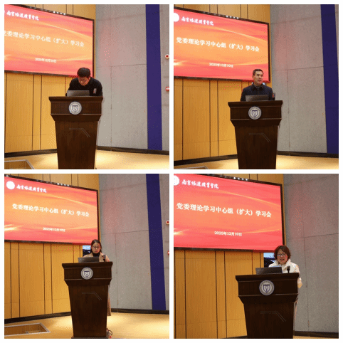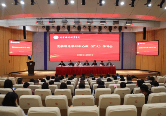 12月10日上午,学院在图书馆报告厅召开党委理论学习中心组(扩大)学习会,党委书记叶凌波出席会议并讲话,会议由党委副书记朱琰主持,学院党委委员、全体中层干部参加会议。