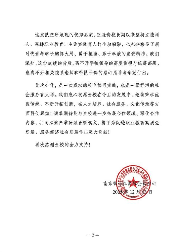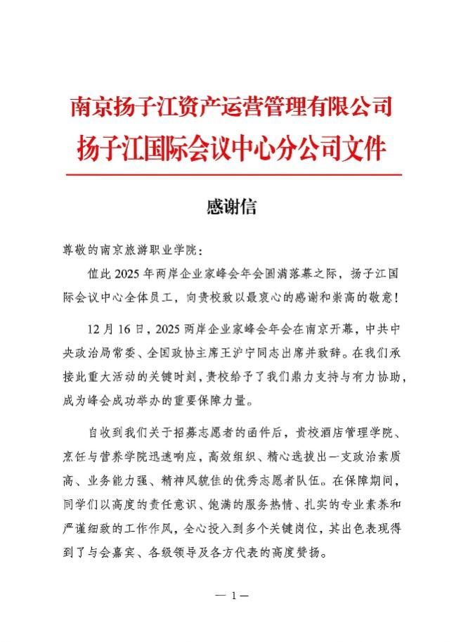 2025 年两岸企业家峰会于12月16日至17日在南京扬子江国际会议中心成功举办。学院精心遴选了62名师生志愿者全程深度参与峰会接待与服务工作,来自酒店管理学院与烹饪与营养学院的师生志愿者以专业表现赢得与会嘉宾认可。