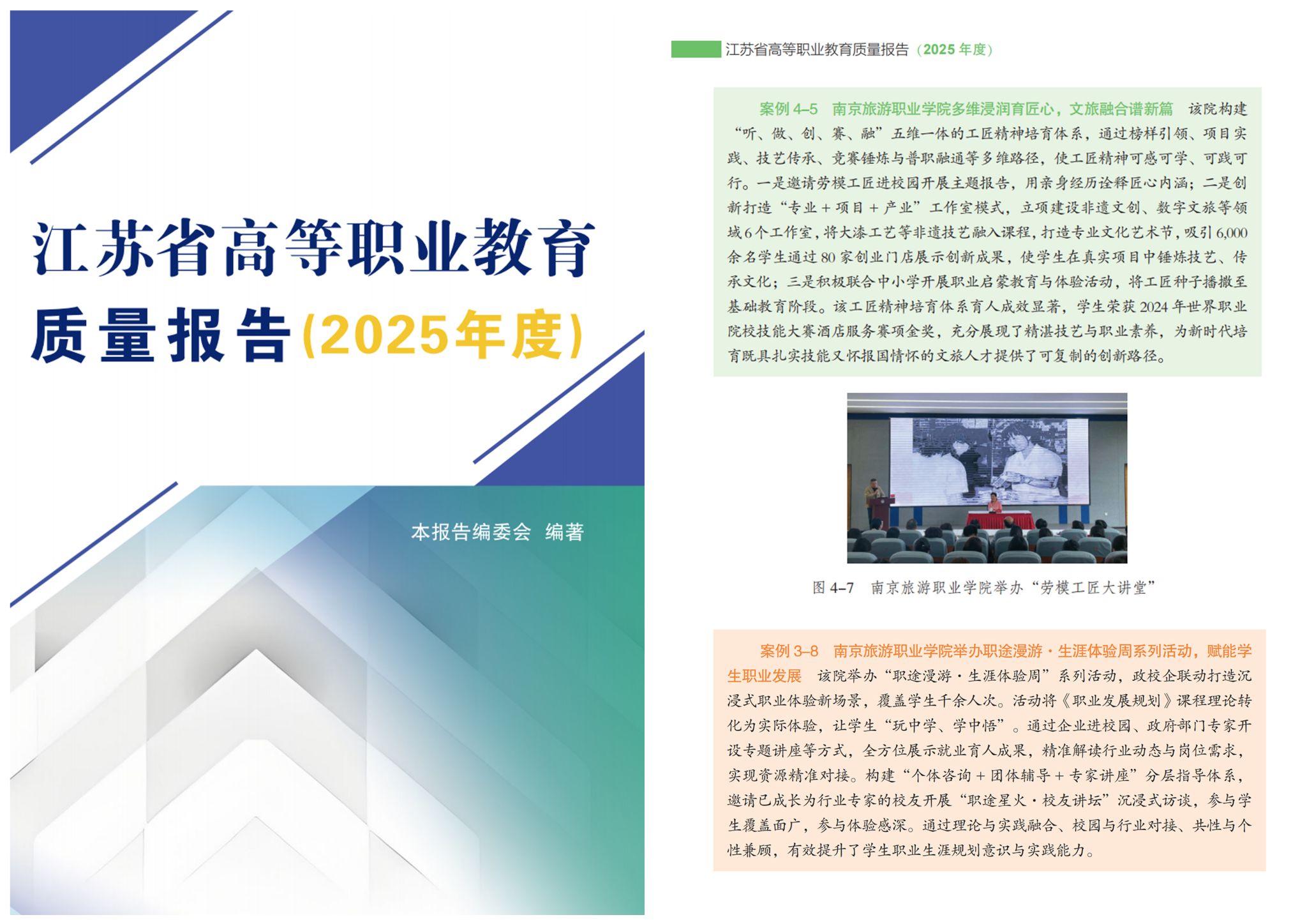 近日,《江苏省高等职业教育质量报告(2025)》正式发布,对江苏省97所高等职业院校整体办学质量进行了全面评价,共编选109个优秀案例。学院共有两项案例入选年度报告,服务贡献、文化传承、人才培养等方面的内涵建设成果在报告中高频次出现。