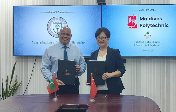 学院与马尔代夫理工学院友好合作备忘录交换仪式在马尔代夫高等教育、劳工与技能发展部举行,洪涛和马尔代夫高教部部长现场交换了备忘录。马尔代夫经济发展与贸易部经济发展官员尼赫拉特·纳斯鲁拉、马尔代夫理工学院CEO祖珊·卡马鲁丁、上海市职业教育产教融合促进会国际合作专委会主任赖兴等共同见证。在9月2日双方已签署框架协议的基础上,此次备忘录交换标志着双方将分步推进“中马旅游酒店管理国际学院”建设,致力于打造一个融合江苏文化、旅游、酒店、餐饮特色的样板国际学院,为中马教育合作搭建起坚实的官方框架,友好合作备忘录交换仪式的举行,也标志着双方教育合作进入实质性推进阶段。