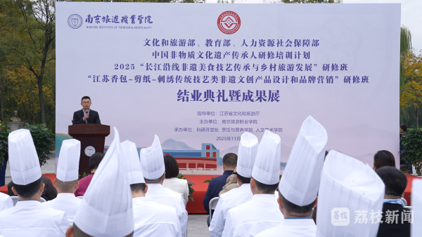 11月6日,中国非物质文化遗产传承人研修培训计划2025年度两项研修班结业典礼暨成果展在南京旅游职业学院举行50位非遗学员现场呈现为期一个月的研修成果,两项研修班分别聚焦“长江沿线非遗美食技艺传承与乡村旅游发展”“江苏香包 - 剪纸 - 刺绣传统技艺类非遗文创产品设计和品牌营销”主题。