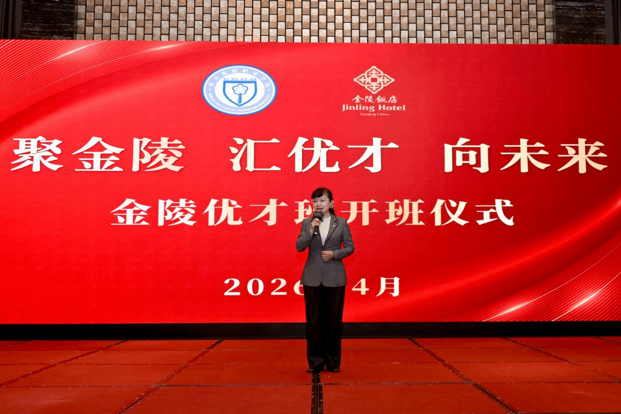 为进一步推动全国现代酒店业产教融合共同体建设,深化南旅数字化酒店产业学院•金陵产业学院工作,赋能酒店行业高技能人才培养,2026年4月16日下午,2025级“金陵优才班”开班仪式在金陵饭店博爱堂圆满举行。学院党委副书记、院长操阳,南京金陵饭店集团有限公司党委副书记张学义,校企双方有关领导、教师,23级、24级、25级金陵优才班全体同学参加了活动。