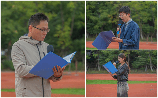 在国旗下讲话环节,25应用西班牙语1班学生代表顾梦祺作了《与法治同行,与祖国共进》的主题发言。她围绕法治精神与国家发展之间的深刻联系,呼吁同学们自觉树立法治意识,将法治信仰内化于心,外化于行。教师代表冯攀从“学法懂法,树立法治信仰;守法用法,规范自身言行;护法传法,勇担社会责任”三个方面深入阐释了“尊法爱国”的实践路径,引导青年学生在法治轨道上成长成才。