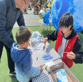 活动现场,志愿者们化身“科学小老师”与“成长陪伴者”,在互动中引导,在陪伴中守护。在“三原色魔法”实验区,志愿者通过通俗生动的语言讲解色彩变化原理,带领孩子们动手操作,直观感受科学的神奇魅力;在“磁力小车”创意工坊中,大家耐心示范磁铁的基本特性,指导孩子们完成小车组装与驱动,激发创造乐趣;在“冰雪魔法”实验区,通过安全可控的干冰与融冰实验,呈现奇妙的物态变化过程,营造出充满惊喜的科学体验场景。户外互动环节中,志愿者全程引导、有序组织,在确保安全的前提下鼓励孩子们积极参与、勇敢尝试,现场气氛热烈,欢声笑语不断。