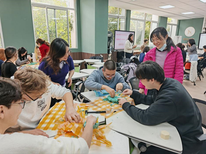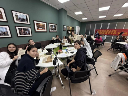 墨香与诗韵交织,匠心与惊喜碰撞。2025年10月29日下午,旅游英语党支部精心策划的“向来华留学生讲好中国故事”系列党日活动之“博物致知,致敬匠心”和“非遗拓印,诗词润心”在英美文化实训室顺利开展。本次活动将中国非物质文化遗产技艺与古典诗词之美巧妙融合,为来自哈萨克斯坦的留学生们带来了一场别开生面的沉浸式文化盛宴。