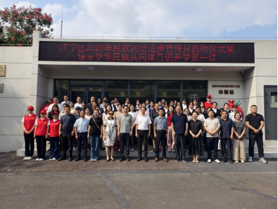 为深化民族团结进步教育,铸牢中华民族共同体意识,9月17日下午,我院师生赴汤山林场参加江宁区2025年度民族团结宣传月启动仪式,并开展铸牢中华民族共同体意识开学第一课。南京旅游职业学院党委委员、副院长张骏,江宁区区委统战部副部长、江宁区民宗局局长江良圣,江宁区区委统战部三级调研员王华,马克思主义学院院长李伟、部分思政教师以及思政社团优秀骨干学生参加此次活动。