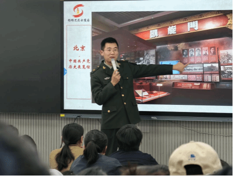 11月5日下午,江苏省青年讲师团成员、杨根思烈士陵园接待宣讲科副科长王金光于在教学楼3201教室开展《铭记伟大胜利 传承英雄精神》专题讲座。讲座从立国之战、传承英雄精神、精神永存励后人、薪火映照新征程四个篇章,用翔实的史料系统讲述了特级英雄杨根思的革命经历、历史功绩及时代价值。随后,申易进行了《最后一次爆破》的生动讲解,将现场氛围推向顶点。