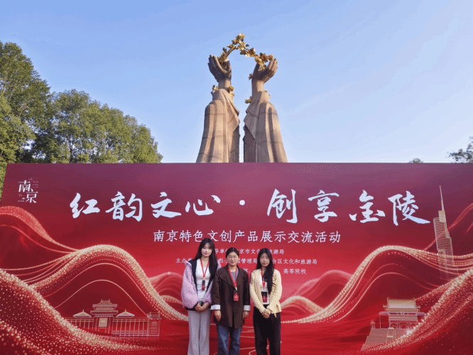 当红色精神融入创意设计,当文化传承邂逅当代审美,一场跨越时空的文化创意与高科技的对话在雨花台展开。11月15日至16日,“红韵文心・创享金陵——南京特色文创产品展示交流活动”在雨花台风景区雨花石文化广场举办,活动由雨花台烈士陵园管理局、雨花台区文化和旅游局联合主办。应主办方邀请,思政社团“薪火社”在指导老师赵欢、周成的带领下参加了此次活动。