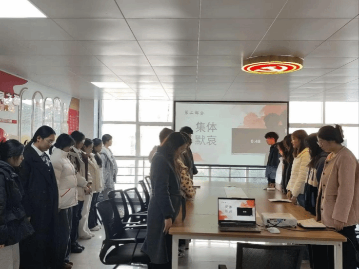 活动开始后,现场肃静无声,师生们低头默哀一分钟,以此缅怀在南京大屠杀中遇难同胞,寄托哀思。默哀仪式后,丁硕带领大家重温了那段历史,通过历史图片、文献资料和视频,让在场同学深刻感受到战争的残酷与和平的珍贵。丁硕表示,如今,中国已成为维护世界和平的坚定力量,我们唯有铭记先辈的苦难与牺牲,传承自强不息的民族精神,才能守护来之不易的和平。