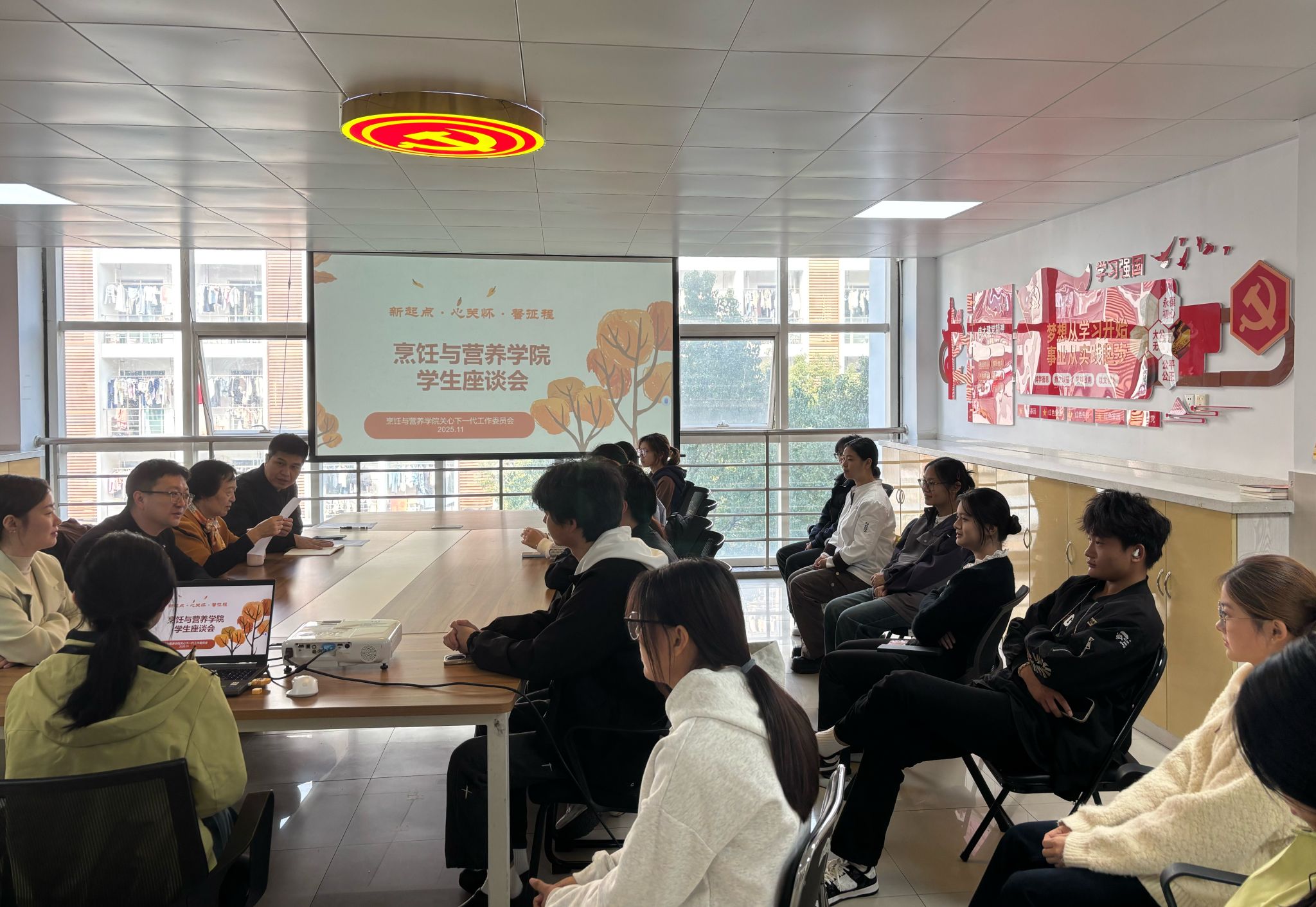 为深入了解大一新生的进校适应情况,传递学院的关怀与温暖,助力新生开启美好的大学征程。11月14日,烹饪与营养学院关心下一代工作委员会在E栋宿舍学生一站式社区组织召开了“新起点·心关怀·馨征程”主题学生座谈会。学院党总支副书记、关工委主任陆华山、实训中心主任高志斌、退休教师陆琴、资助专员罗妍以及17名大一各班级困难学生、少数民族学生代表参加了座谈会,活动由学院关工委秘书张莉主持。