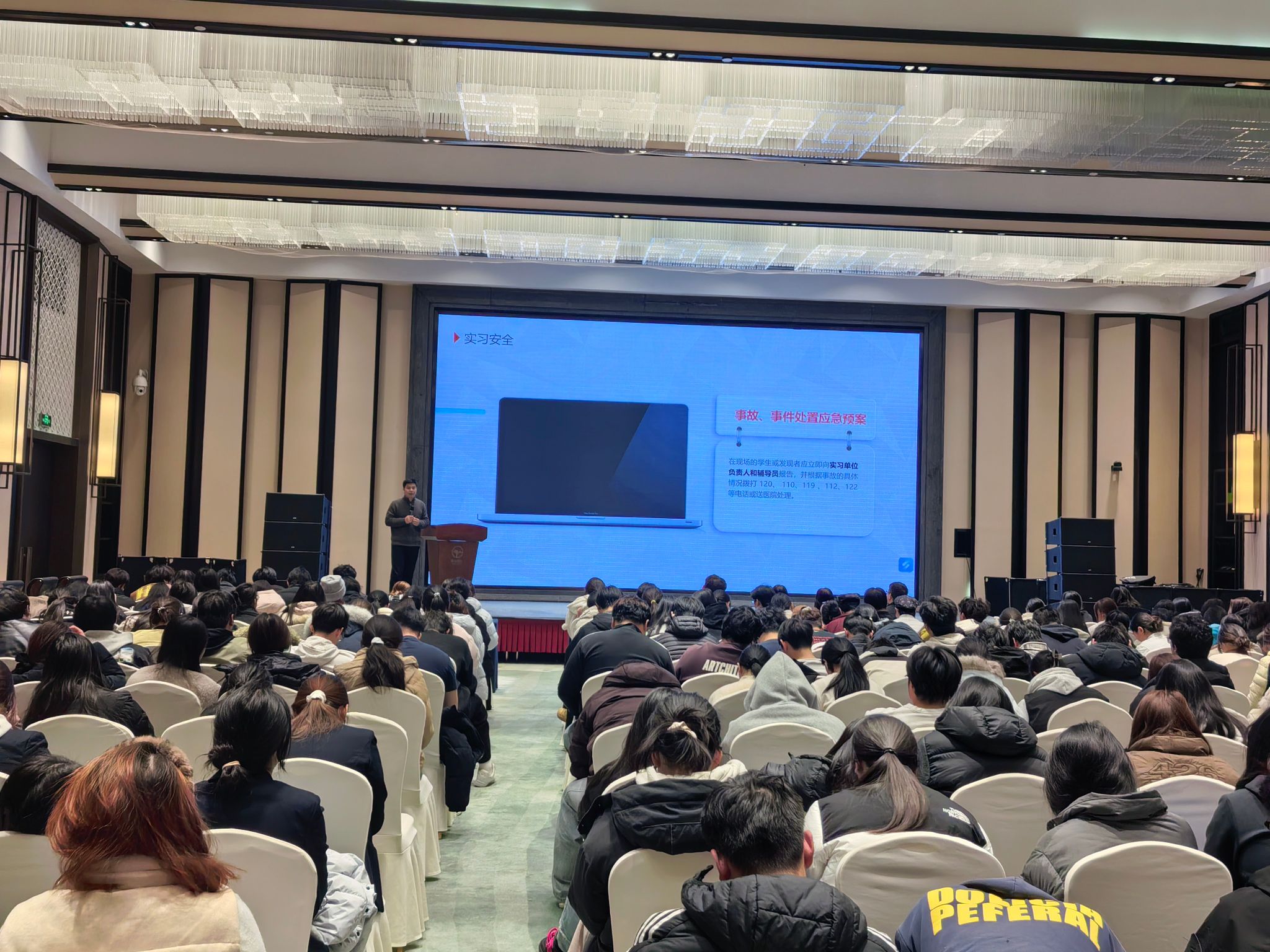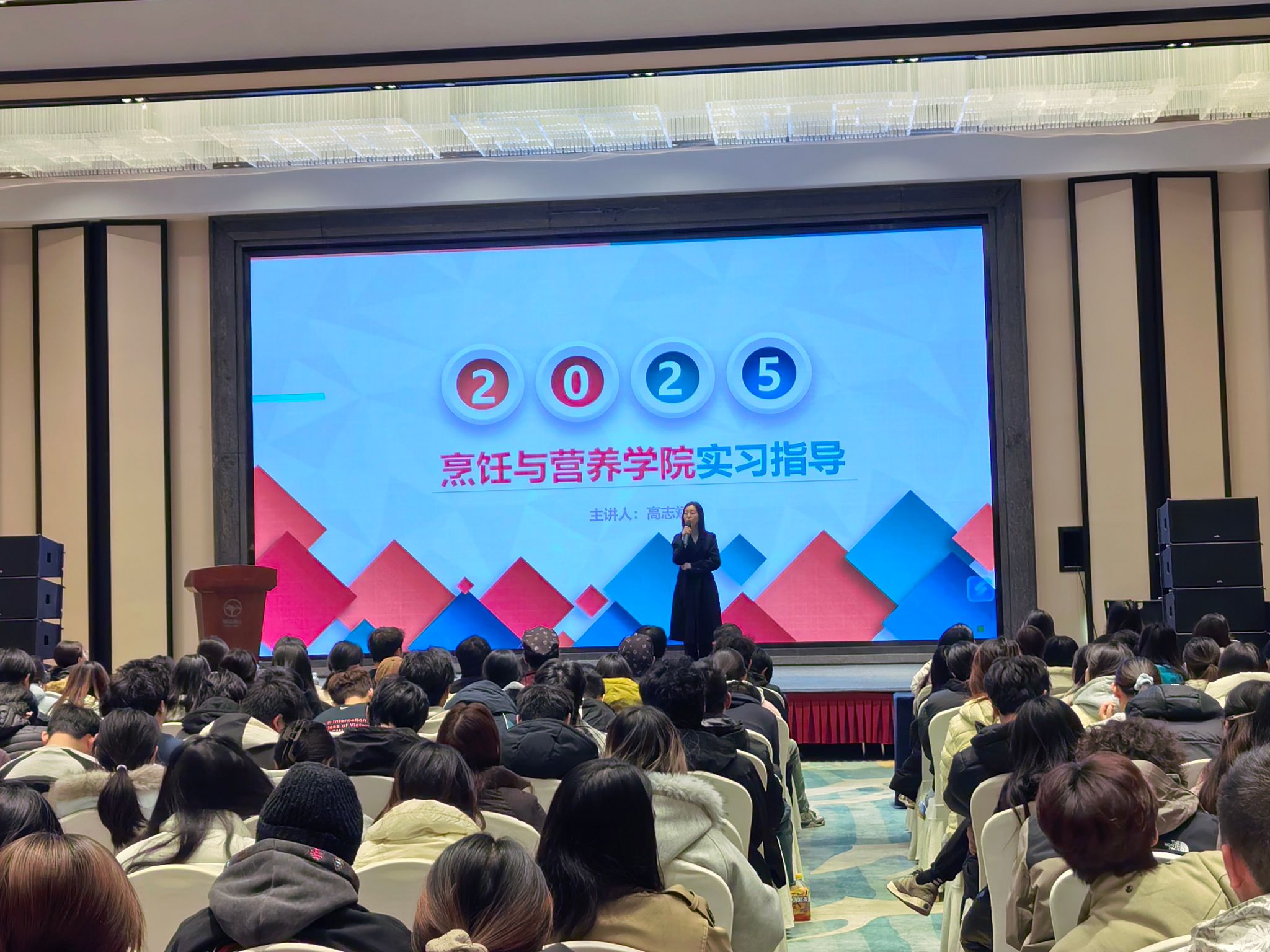 2025年12月17日,南京旅游职业学院烹饪与营养学院在御冠酒店共和厅举办了2024级学生跟岗学习与顶岗实习动员大会暨实习安全宣讲会,旨在引导学生明确实习目标、甄选适宜岗位,并全面提升安全防范意识。