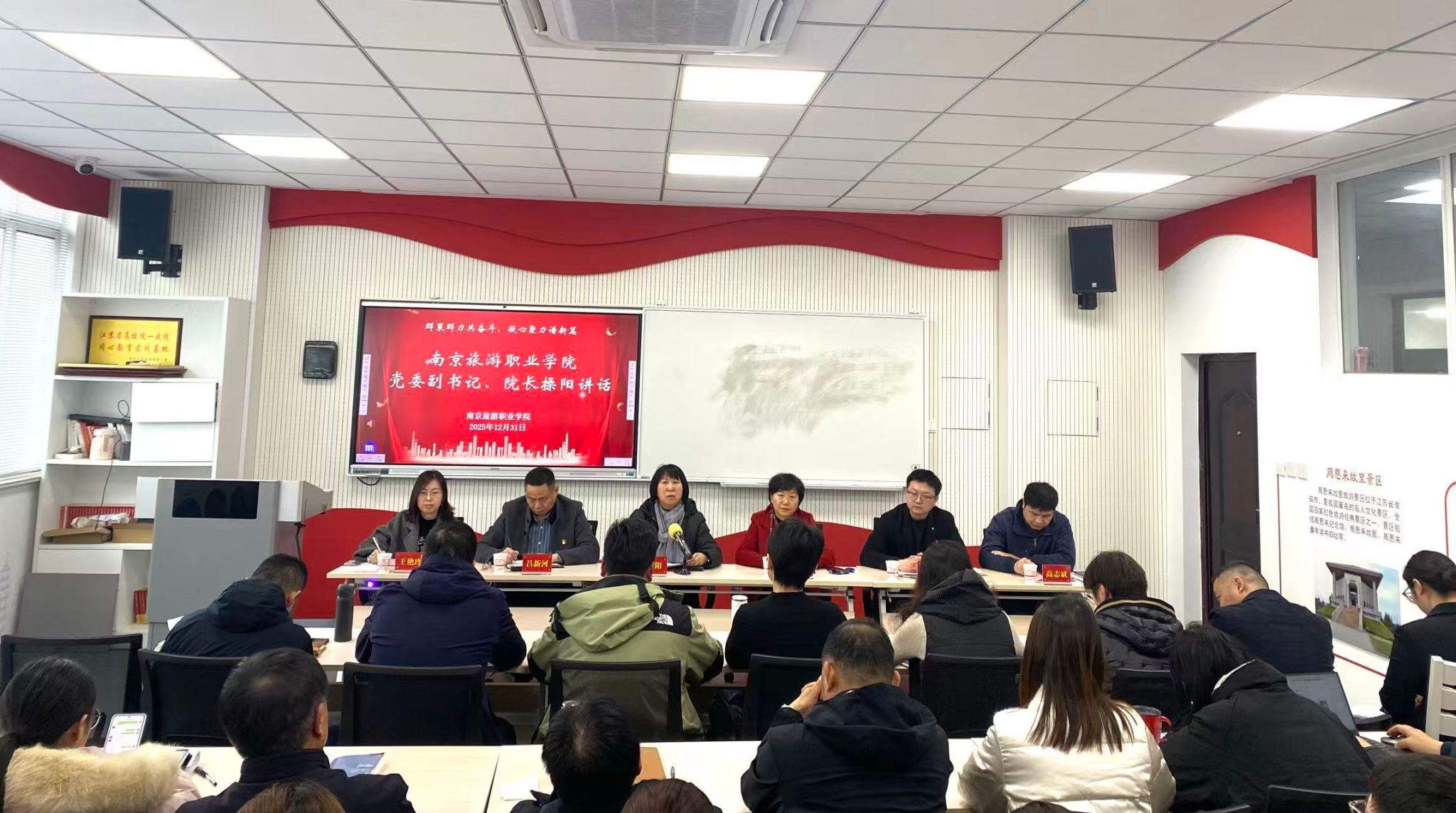 12月31日下午,烹饪与营养学院在1104会议室召开2025年度教职工代表大会。南京旅游职业学院党委副书记、院长操阳,南京旅游职业学院工会主席邵华,烹饪与营养学院院长吕新河、党总支副书记陆华山、副院长王艳玲、实训中心主任高志斌及全体教职工参加会议,会议由学院分工会主席王全云主持。