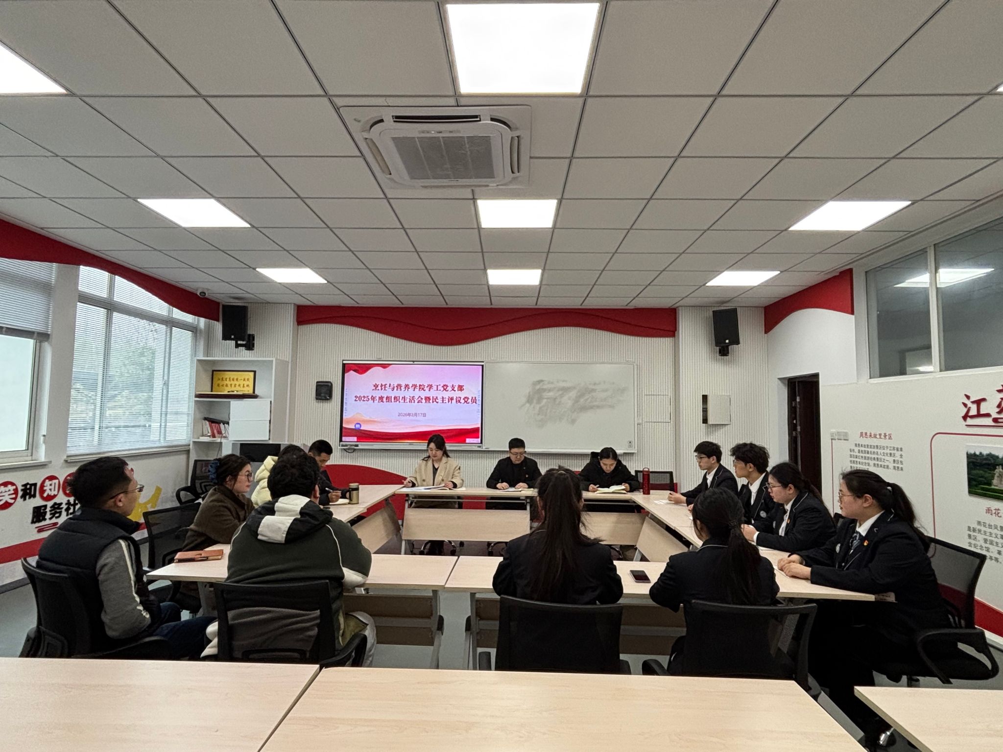为深入学习贯彻党的创新理论,严肃党内政治生活,加强师生党员教育管理,切实提升党支部的凝聚力与战斗力。2026年3月17日,烹饪学工党支部在党员之家召开2025年度组织生活会暨民主评议党员大会,支部全体党员参加会议,会议由支部书记张莉主持。