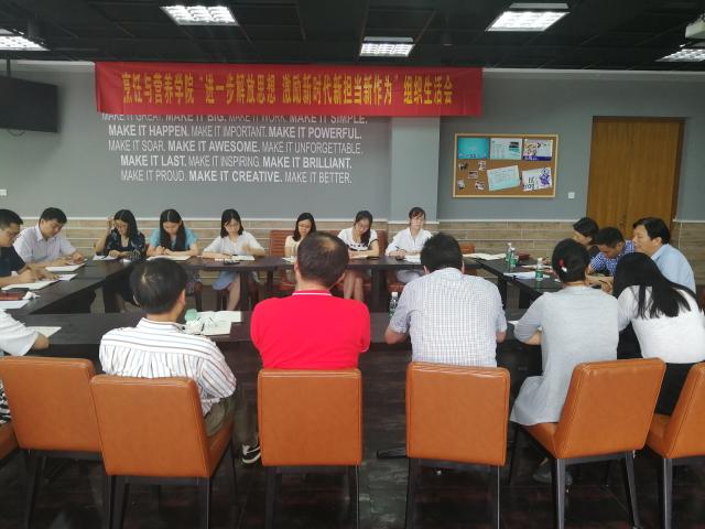 为深入学习贯彻习近平新时代中国特色社会主义思想,纪念建党97周年,我院党总支在实训楼蓝蛙教室召开“进一步解放思想,激励新时代新担当新作为”专题组织生活会。会议特邀我校冯明副校长参加,吕新河副院长等教师党员参加会议,党总支书记胡国勤主持。