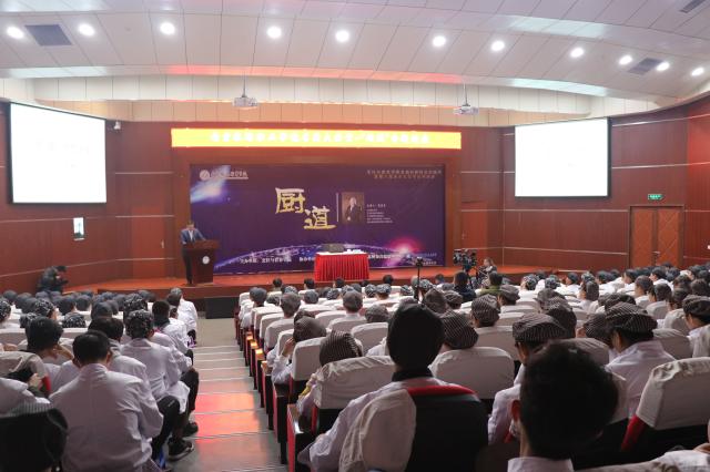 花惠生大师结合自己的成长经历,声情并茂、妙语连珠,为大家讲解了什么是“厨道”。他指出学厨要有十二字:人常交、品加分、法器新、料定量。他告诫大家要学会做人、做事,要有匠心精神。学厨之道,当以多做为师,多看多想多品为道,没有人能够不做而徒手成技,不察不思而妄想成才,不品不尝而知味;这种做的过程,就是熟能生巧的过程,谁都不可能速成。