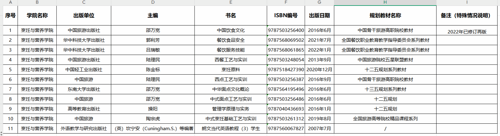 为加强对教学工作的指导,促进教材选用工作更加科学、可行,根据《南京旅游职业学院教材管理办法》,现将烹饪与营养学院2022-2023学年第1学期学生选用教材公示如下: