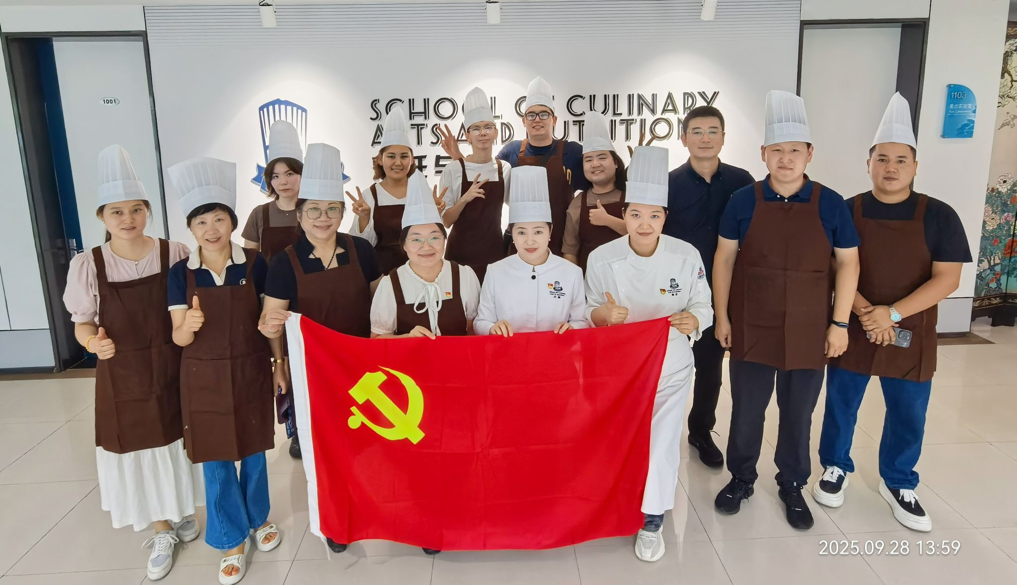 金桂飘香迎玉兔,丹桂团圆话佳节。为弘扬中华优秀传统文化,深化民族团结进步教育,9月28日下午,由中西面点与餐饮智能管理党支部与机关党总支联合主办的“巧制月饼传古意,执手共话中秋情”主题党日活动在实训楼2203教室成功举办。活动以传统月饼制作为载体,吸引了来自烹饪与营养学院的师生代表、在校留学生、少数民族学生及党员教师共40余人参与,共同感受中秋文化的深厚底蕴与民族团结的温暖力量。