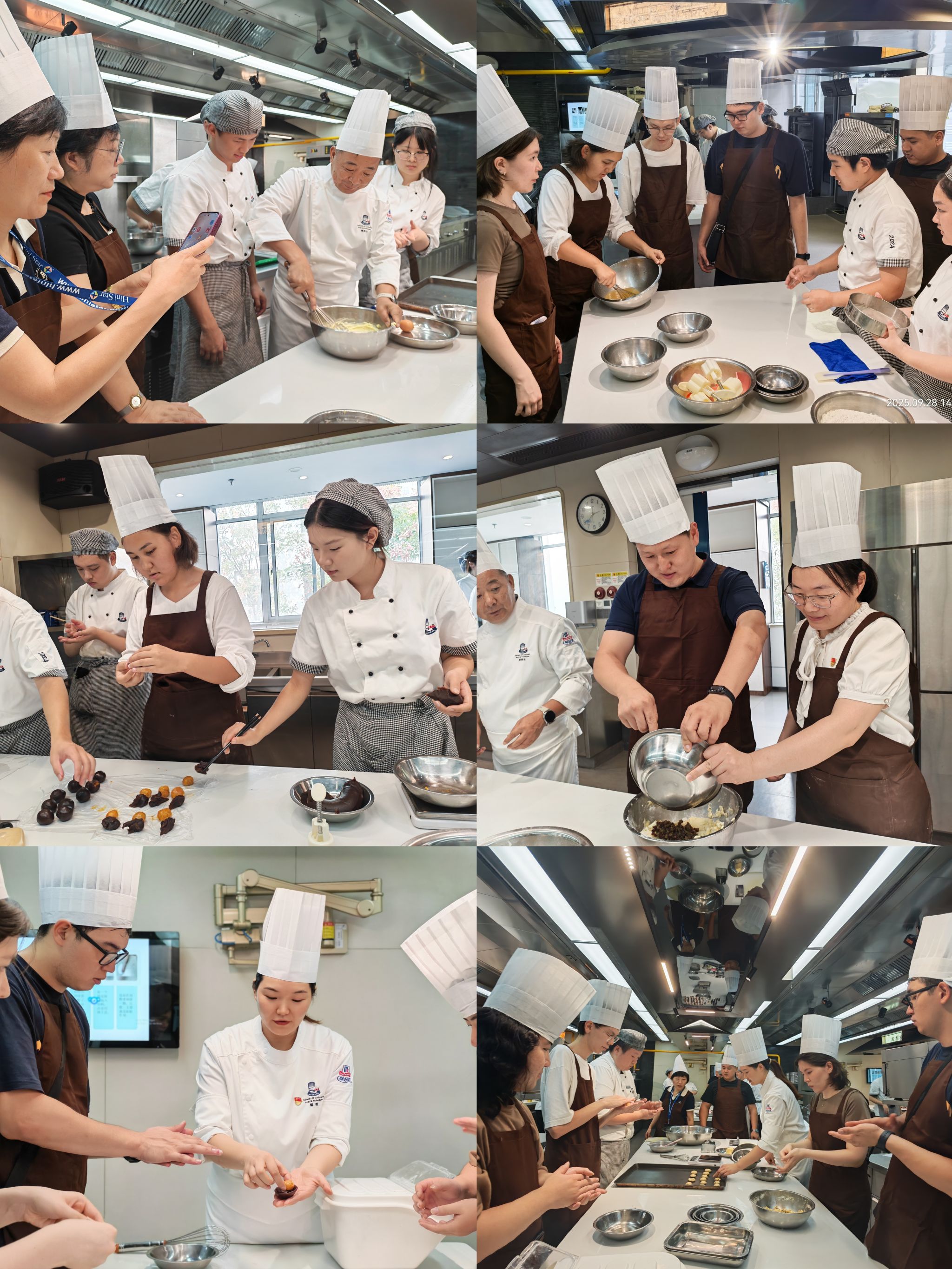 在实践环节,党员教师与学生们分成多个小组,共同体验月饼制作。来自哈萨克斯坦的留学生们在端老师的指导下,首次尝试了月饼的制作,留学生们说:“中国的月饼就像一个神奇‘文化符号’,今天亲手做出来的那一刻,我才真正理解中秋团圆的意义。”机关党总支的党员教师则与学生结对协作,李明老师一边擀皮一边感慨:“看到年轻一代对传统文化的热情,我们传承的接力棒交得放心。”中西面点与餐饮智能管理党支部书记吕慧老师表示:“本次活动创新了党建形式,既是一堂生动的传统文化课,也是一次深刻的民族团结教育,让师生在实践中感悟‘各民族像石榴籽一样紧紧抱在一起’的精神内涵。”