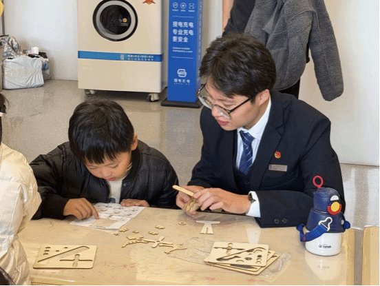 本次活动共分为三个环节:第一个环节是空乘党支部高山老师为现场的小朋友做了“宠物上飞机那些事”专题讲解。她结合自身从业经验和专业知识,从宠物托运的政策要求、健康检疫流程、航空运输安全注意事项等方面进行细致解读,同时引导孩子们树立规则意识和责任意识;第二个环节是“飞机积木搭建”,党员老师们和人文“青锋”志愿服务队的学生们从航模构造原理、组装技巧及航空安全基础知识展开讲解,从机身拼接、动力系统调试到飞行安全规范,层层递进拆解实操要点,每一个步骤都精益求精;第三个环节是“飞机橡皮泥塑创作”,在志愿者的悉心指导下,小朋友们通过揉捏与塑形,将五彩斑斓的材料变成了属于自己的小飞机。这不仅是一次手工创作,更是一次心灵的成长之旅,孩子们在劳动中收获了自信,也对“劳动创造价值”有了全新的理解。
