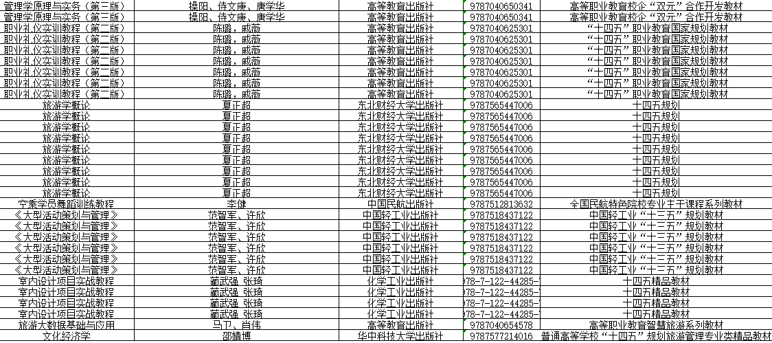为加强对教学工作的指导,促进教材选用工作更加科学、可行,根据《南京旅游职业学院教材管理办法》,现将人文艺术学院2025-2026学年第2学期选用教材公示如下: