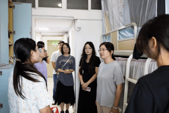 为深入了解2025级新生入校适应情况,传递学院关怀,9月11日下午,旅游管理学院党总支书记夏梦、党总支副书记李伟、副院长崔英方及全体辅导员一同走进新生宿舍,为初入校园的旅管学子送上温暖问候。