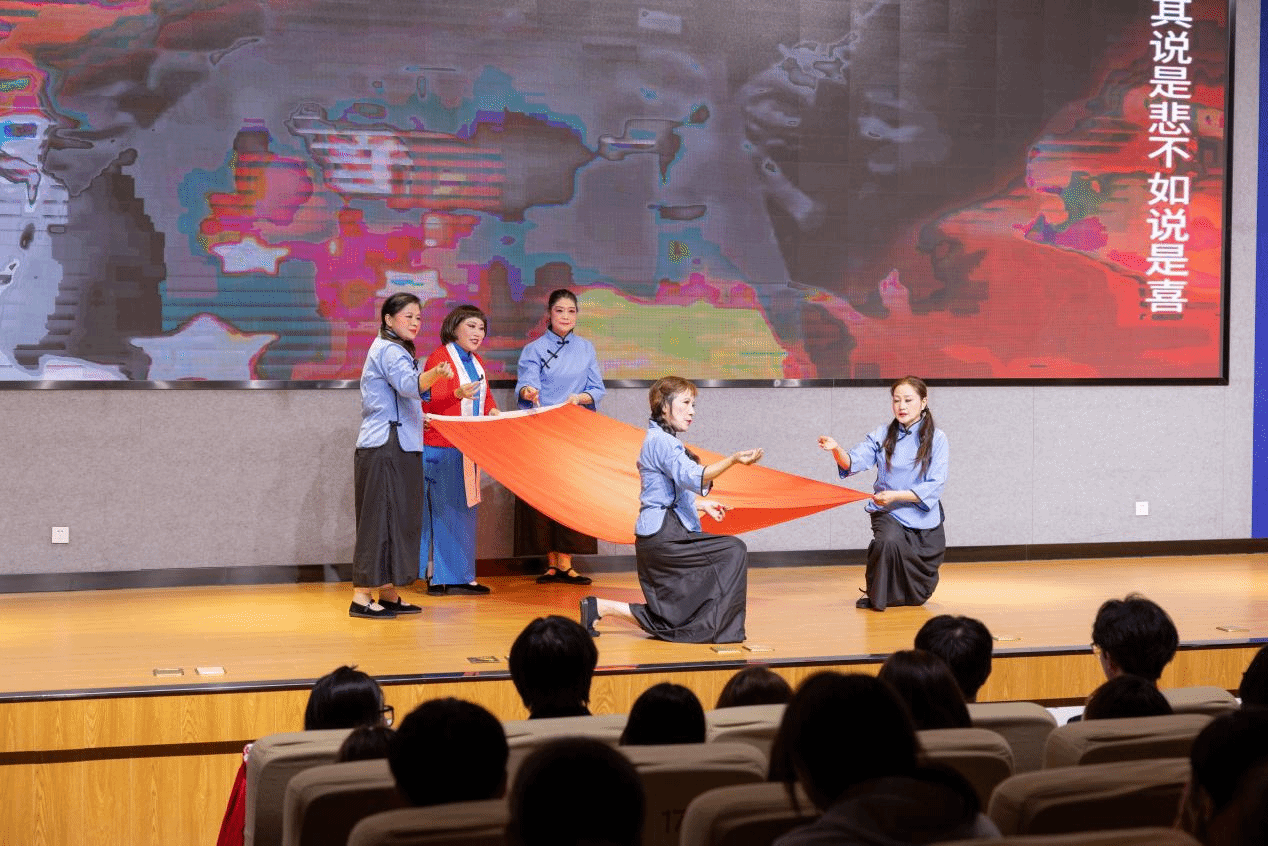 在此次活动中,越音艺术团的老师们携一身深厚功底登台,不仅带来了意蕴悠长的越剧展演,更献上了豫剧的铿锵豪放、黄梅戏的清新婉约等经典片段。演员们以身段眉眼间的深厚底蕴,将不同剧种的独特魅力展现得淋漓尽致,台下掌声此起彼伏、经久不息,彰显着青年一代对中华优秀传统文化的热爱与认同。