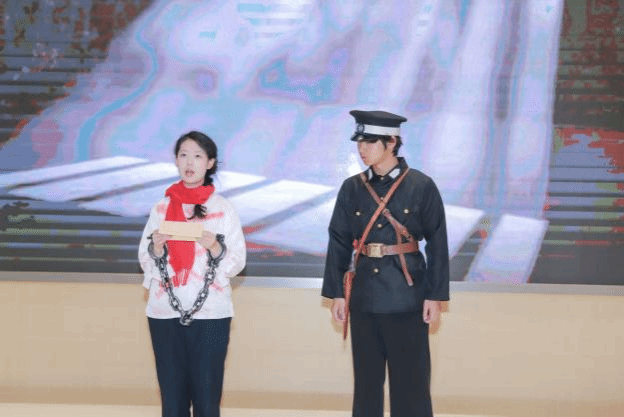 评审会现场,“绿丝带” 志愿服务团队率先带来革命历史话剧《墨云不墨》,陈墨云的庄严宣誓、陈君起赠围巾的温情瞬间及演员谢幕的肃穆神情,尽显对历史细节的精准把握与革命精神的深刻体悟。这部经数次打磨的作品,以艺术化表达带观众穿越时空,真切感受革命先辈于艰难险阻中坚守信仰的赤诚之心。
