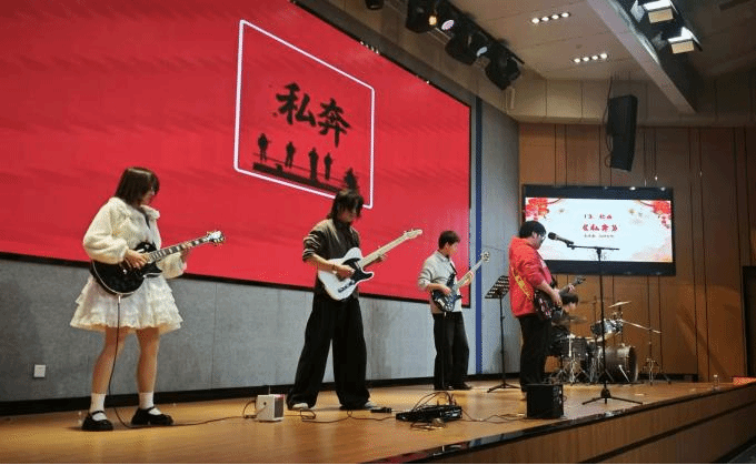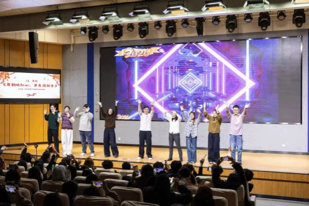 值得一提的是,本次晚会特别设置了辅导员惊喜表演环节。平日里在三尺讲台上传道授业的辅导员们,化身舞台上活力四射的舞者,以一曲《红日》倾情演绎,瞬间点燃全场氛围,赢得阵阵喝彩。随后沉沙乐队登场,鼓点与吉他声交织,燃爆全场的表演将晚会氛围推向高潮,每一个音符都充满力量,为跨年夜画上浓墨重彩的一笔。