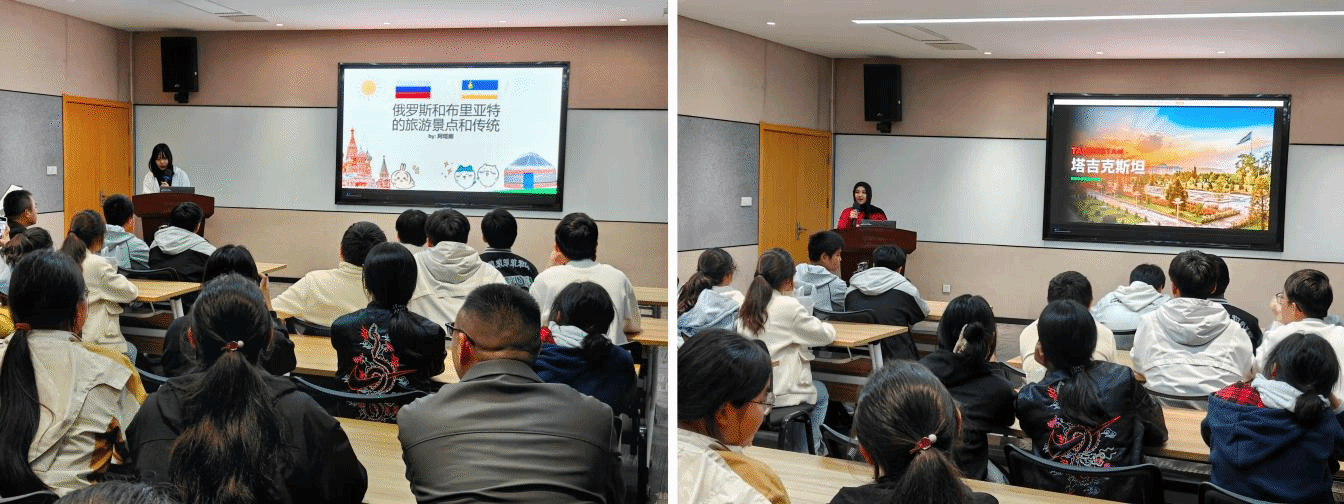 8日晚,旅游管理学院团总支书李倩携“绿丝带”志愿服务团队为兴化师生举行了一场“全球青年与社会发展交流会”,来自南京的刘嬿祺、来自俄罗斯的Zandeeva Altana (阿塔娜)、来自塔吉克斯坦的Rahmonzoda Madina (悠然)依次向同学们分享家乡特色、文化风俗、风土人情。兴化大垛中心校的同学们也纷纷上台,讲述了家乡的油菜花、美食和风景。