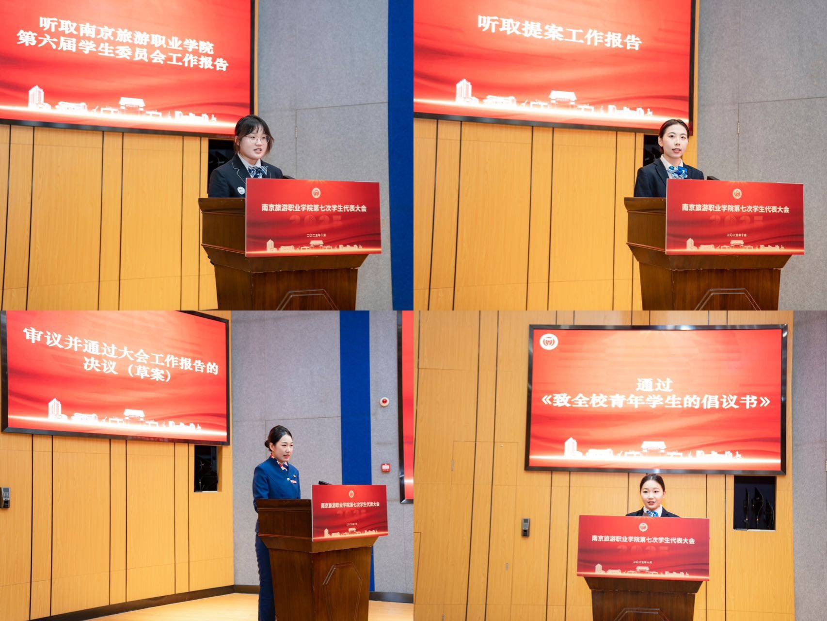 会后,在南京旅游职业学院第七次学生代表大会第七届学生委员会第一次全体会议上,选举产生了第七届学生委员会主席团成员。