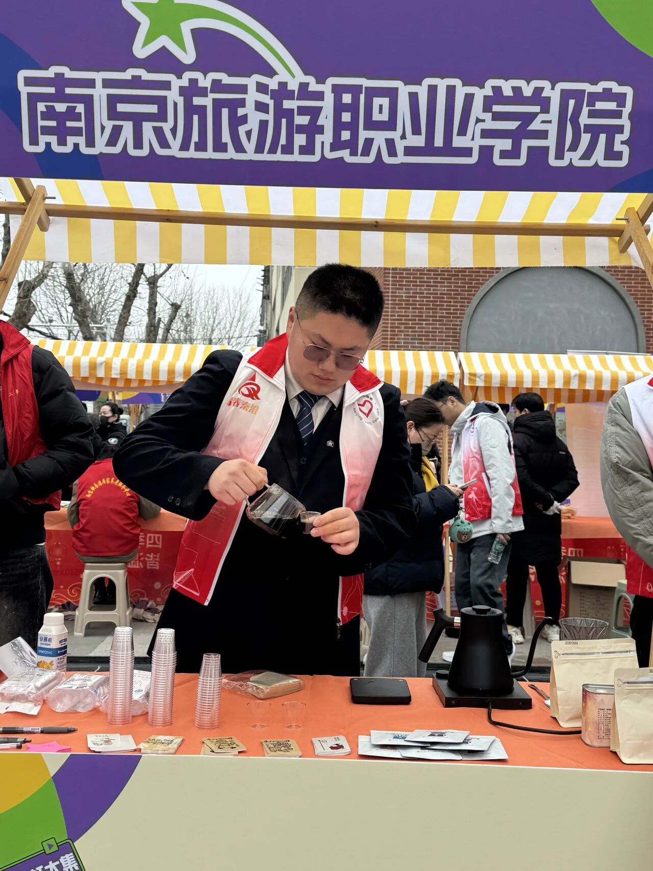 为传承雷锋精神,弘扬“奉献、友爱、互助、进步”的志愿精神,在第63个学雷锋纪念日与第27个中国青年志愿者服务日当天,我院团委老师梁海玥带领咖啡社同学,积极参与“青春志愿行 奉献新时代”秦淮区学雷锋青年志愿服务暨“光华·赶大集”志愿服务零距离活动,以专业所长传递温暖,深化校地共建情谊。
