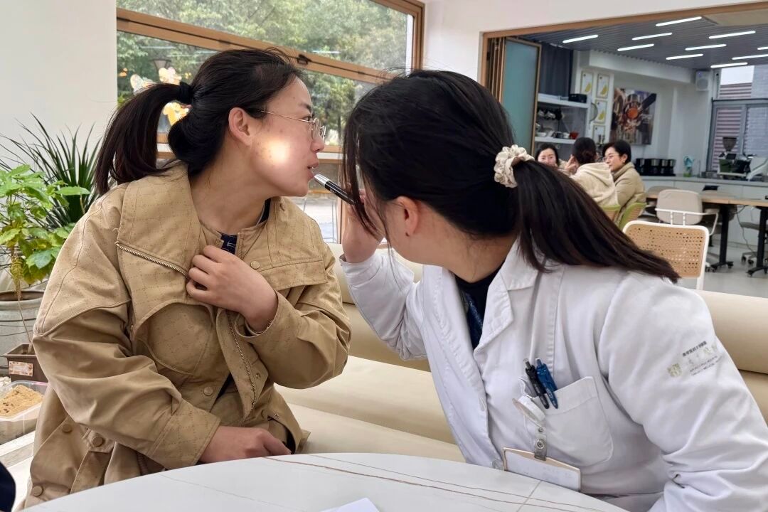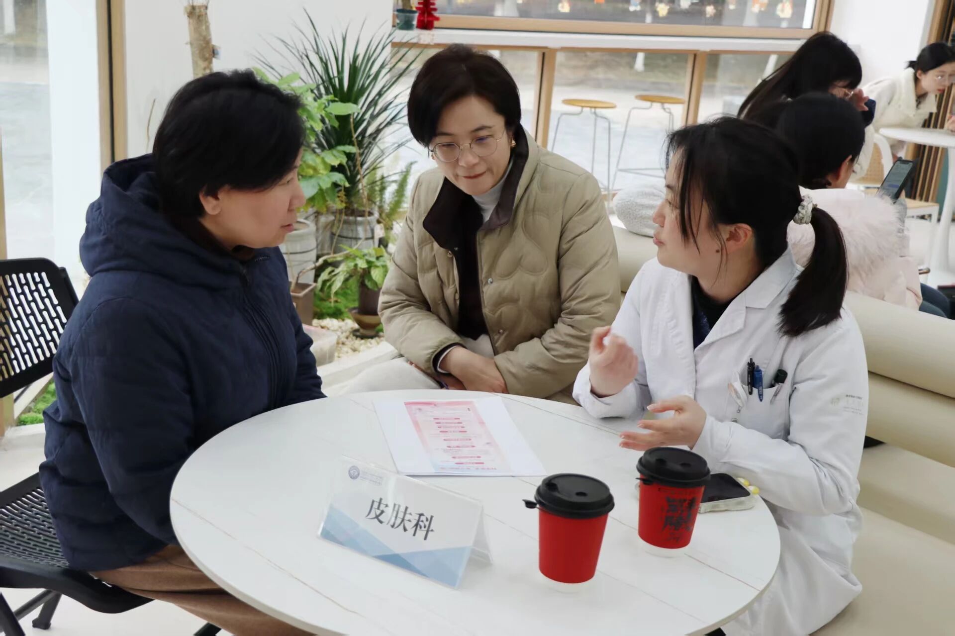 活动现场,朱燕萍主治医师耐心接待咨询师生,聚焦春季皮肤敏感、护肤误区等核心问题,精准答疑解惑并提供个性化指导,助力师生科学护肤、规避春季皮肤困扰。