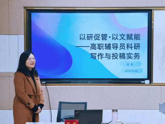 讲座中,侯波主编以“认知破局:科研写作为何成了刚需”为切入点,深入剖析了新时代高校辅导员科研能力提升的必要性与紧迫性。她指出,科研写作不仅是辅导员职业发展的核心竞争力,更是推动学生工作理论与实践创新的重要抓手。针对辅导员普遍面临的“选题难”“写作难”“投稿难”等问题,侯波结合自身丰富的科研经验,从“选题破题”“写作破障”“投稿破局”等多个维度进行了系统指导。她强调“黄金切入点就在身边”,鼓励辅导员立足日常工作实践,从学生管理、心理健康、就业指导等实际问题中挖掘研究课题,将经验总结升华为学术成果。在“写作破障”部分,她详细讲解了学术论文的结构规范、逻辑框架与写作技巧,通过案例分析演示如何将零散的工作经验转化为条理清晰的学术论文。